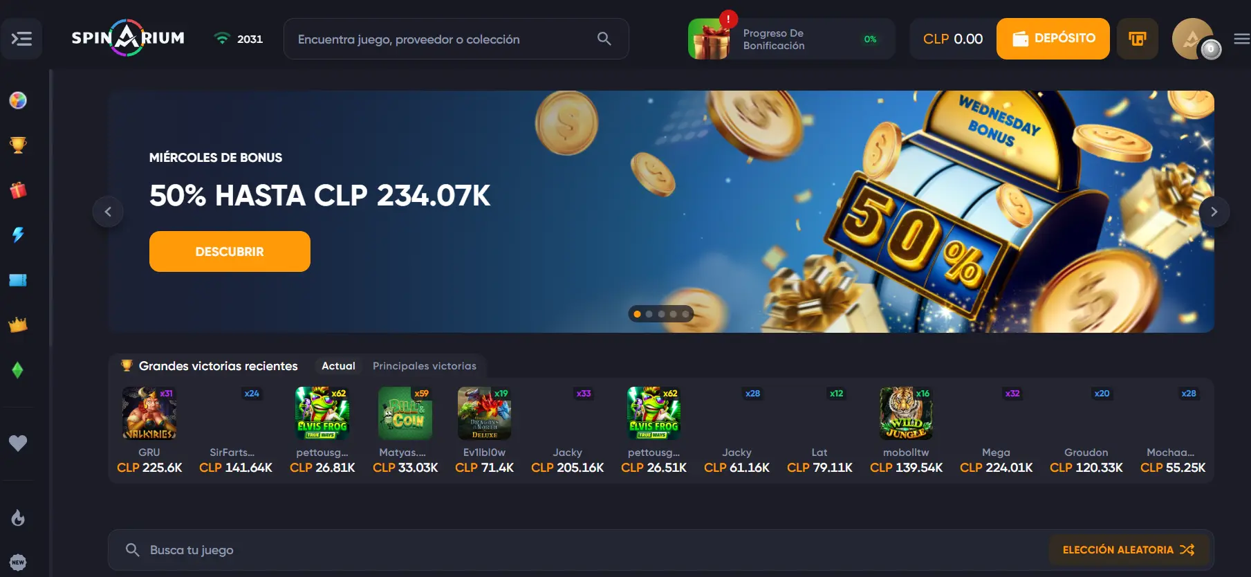 Spinarium también ofrece un bono tras realizar un depósito en BTC. Según los términos y condiciones, los usuarios reciben un 500% hasta 4.690.000 CLP (0,0050 BTC). Además, el sitio ofrece una de las apuestas más fieles entre sus competidores: solo x35, que debe apostarse en un plazo de 7 días.