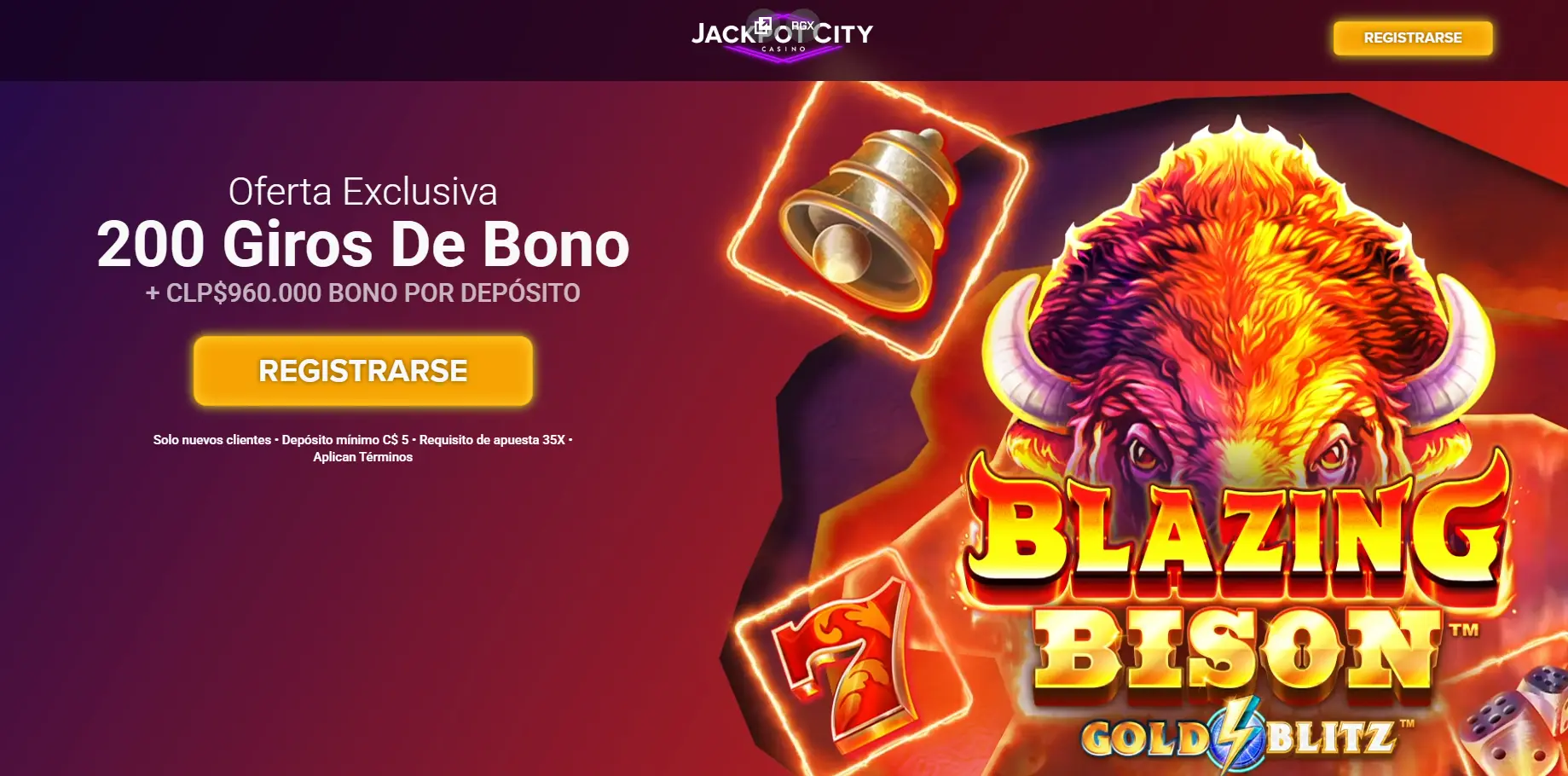 | Ciudad del Jackpot | 200 giros gratis + hasta 960.000 CLP | x30 por 30 días | 5.000 pesos chilenos |
