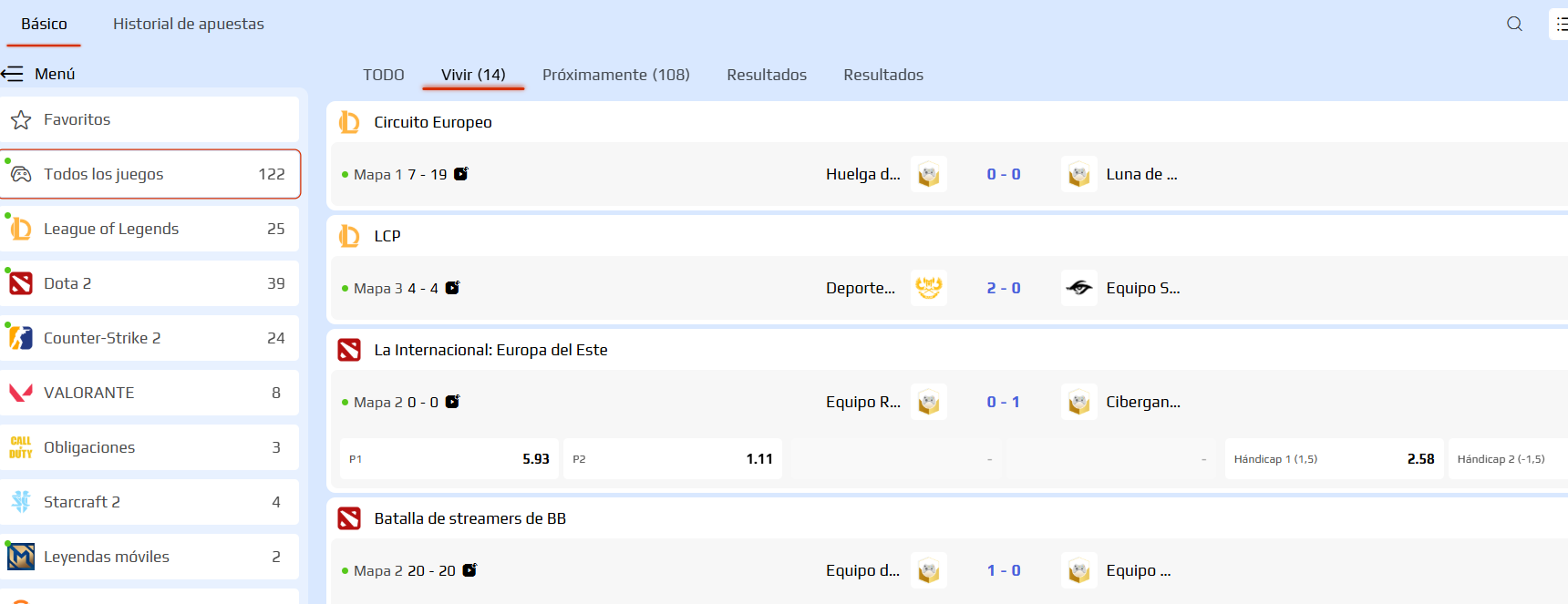 La sección de apuestas en vivo funciona de forma estable y rápida. La mayoría de los partidos cuentan con visualizaciones gráficas o infografías, y las cuotas se actualizan con mínima latencia. Es fácil alternar entre mercados o filtrar eventos por hora de inicio. Todas las apuestas quedan registradas en el historial de cuenta y existe función de Cashout.