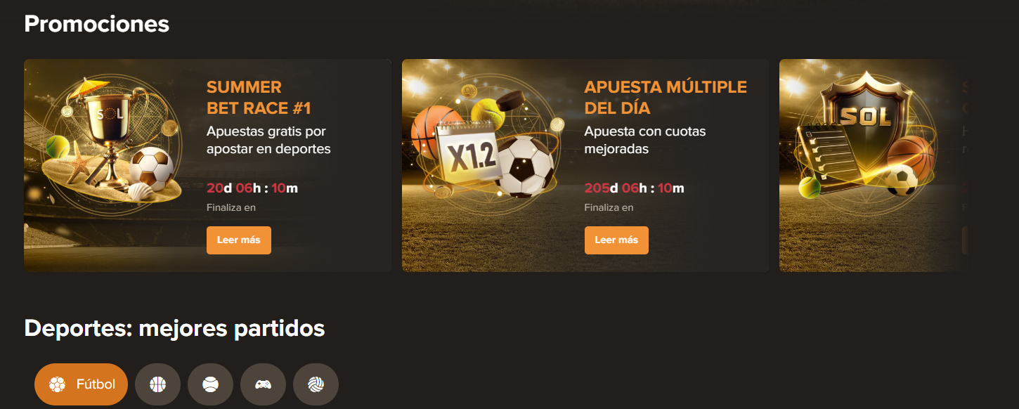 Aunque Sol Casino online es más conocido por sus tragamonedas, su apartado deportivo sorprende por la profundidad y variedad de eventos disponibles.