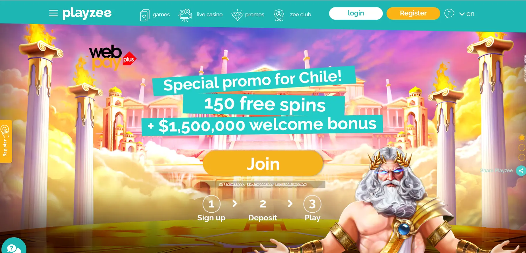 | Playzee | Hasta CLP 1.500.000 + 150 Zee Spins + 500 Zee Points | Depósito mínimo: CLP 7.000. Requisito de apuesta: 30x. Los giros gratis pueden tener restricciones en ciertos juegos. (Las condiciones pueden cambiar) |