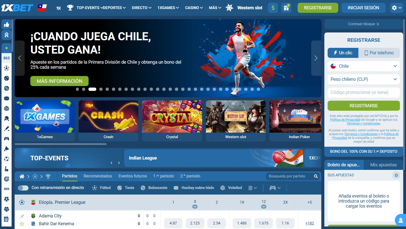| 1xBet | CLP 2.500 | CLP 4.000 | 15 min–1 día | No |