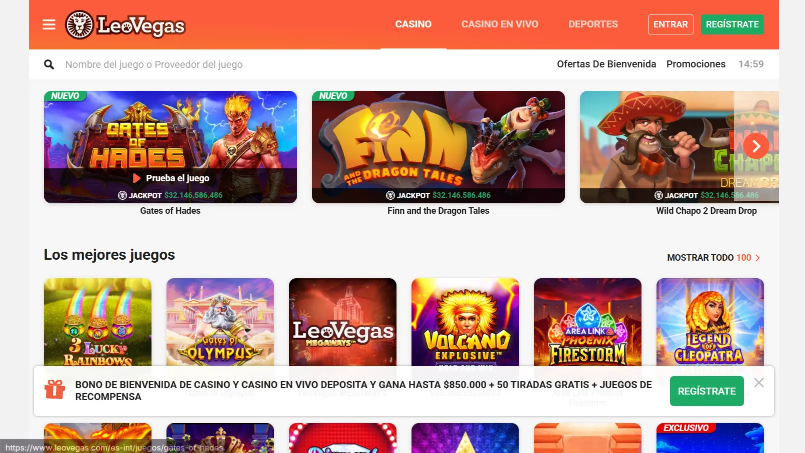 | LeoVegas | CLP 5.000 | CLP 7.500 | hasta 24 horas | No |